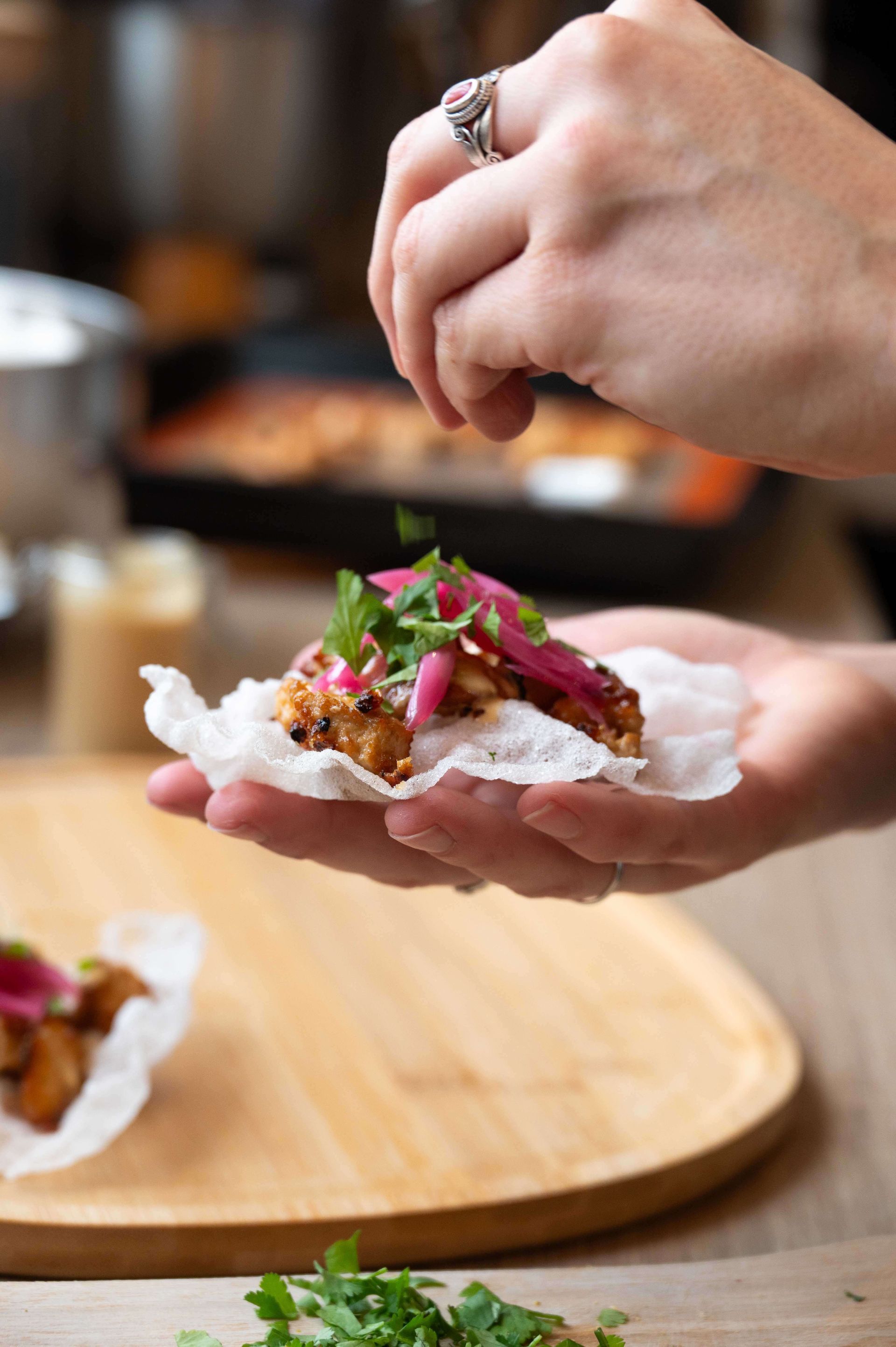 En proposant une grande variété de plats, j'espère vous faire découvrir les nouvelles facettes de la cuisine végétale. Chaque tapas contiendra différentes sources de protéines, de fibres, de lipides et de glucides. En outre, j'accorde une grande importance aux différentes textures et saveurs afin de trouver un bon équilibre.